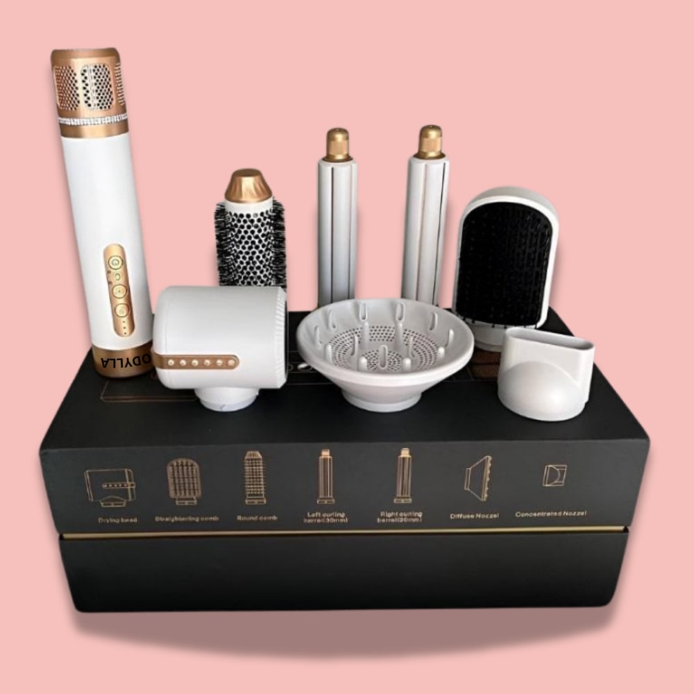 Révolutionnez votre routine capillaire avec notre brosse soufflante professionnelle 7 en 1. Un seul appareil pour sécher, lisser, boucler, volumiser et styliser vos cheveux comme chez le coiffeur.